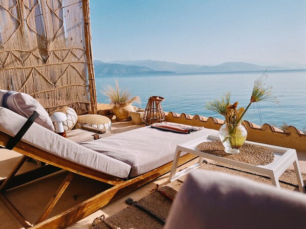 - 1 newly renovated rooftop with amazing views to the sea and the backyard garden! Equipped with two sun beds and a beautiful reed roof. (13 square meters).