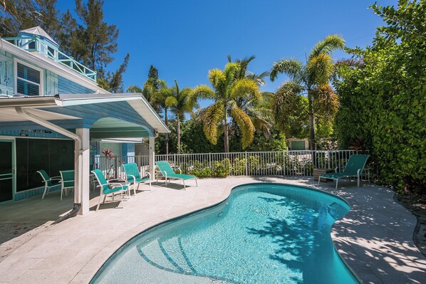 After a beautiful day at the beach, retreat to your backyard, where you can lounge by the pool and take a shower at the outdoor shower located on the backside of the house. Cook up some of your family favorites on the charcoal BBQ grill to enjoy at the outdoor dining table. Explore Anna Maria Island on your own or check out the local tour guides to show you some local treasures on the land and at sea! Blue Mermaid is so close to the delicious restaurants and locally owned boutiques that it is sure to have something for everyone in your group.