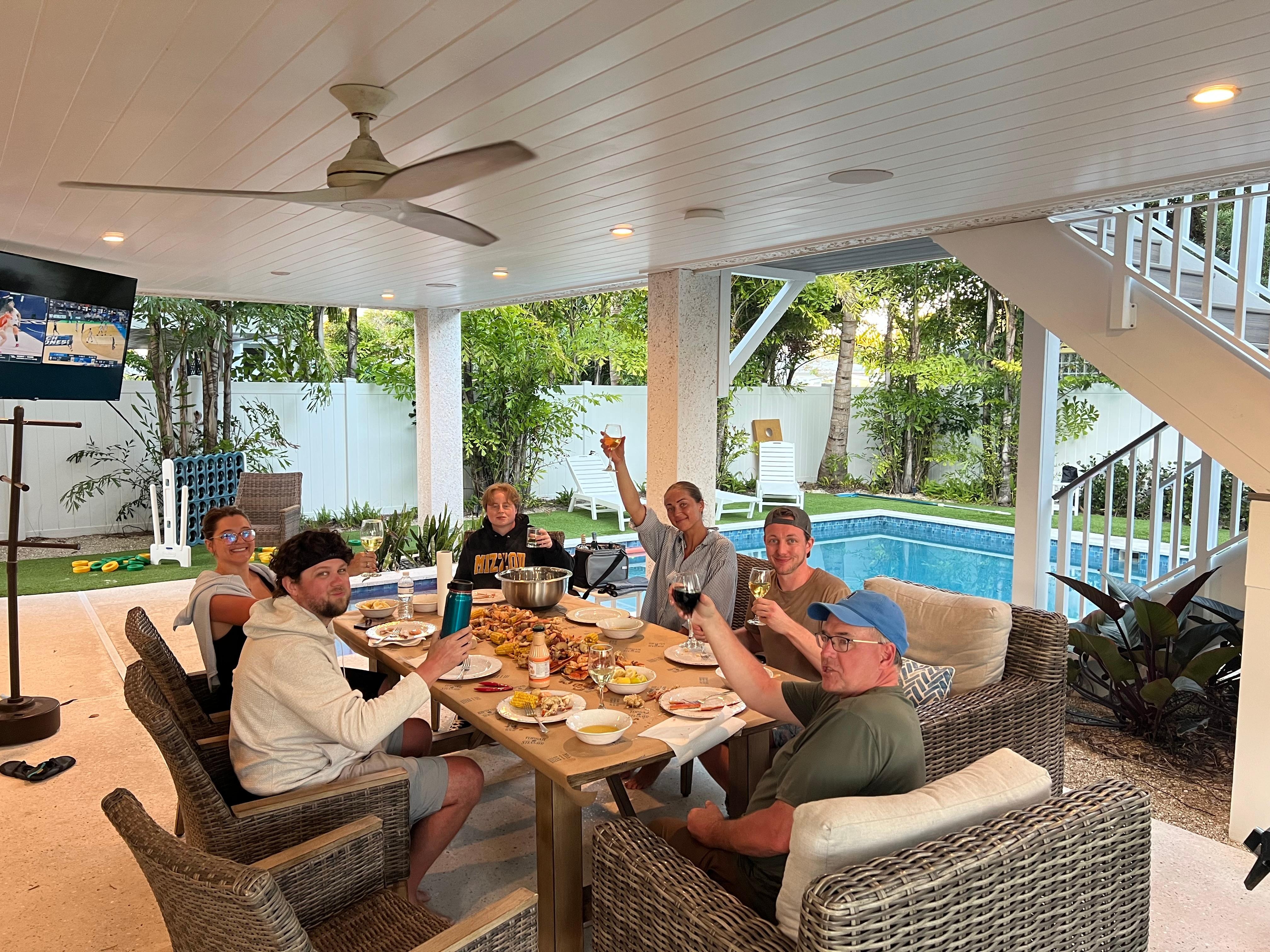 Loved our stay in this beautiful family vacation home. Clean, modern, elegant interiors. All ensuite bedrooms. Fabulous open plan kitchen/dining/living space. Great kitchen for multiple home-chefs to cook all at one time! Pool and hot tub: perfection. Great location on AMI, easy walking access to beach, piers, restaurants, shopping, farmers' market. Everyone agreed this was the best family beach vacation house ever!