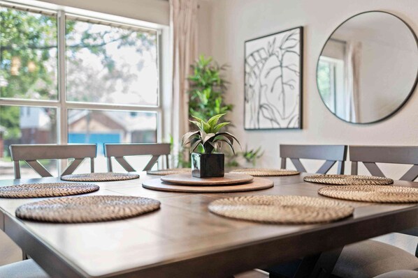 - Dining table with seating for 8