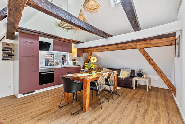 Located in Bahlingen am Kaiserstuhl, the holiday apartment Rebstock Studio has everything you need for a comfortable holiday. The 2-storey property consists of a living room, a fully-equipped kitchen, 2 bedrooms and 1 bathroom and can therefore accommodate 4 people. Additional amenities include Wi-Fi, a TV as well as a washing machine. A baby cot is also available.