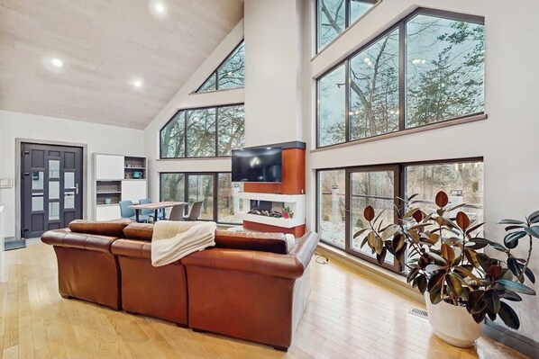 Modern Riverfront Home w/ gas fireplace, patio, grill, & washer/dryer, Dogs-OK的所有客房都有空調等舒適享受,以及上網等其他設施服務。