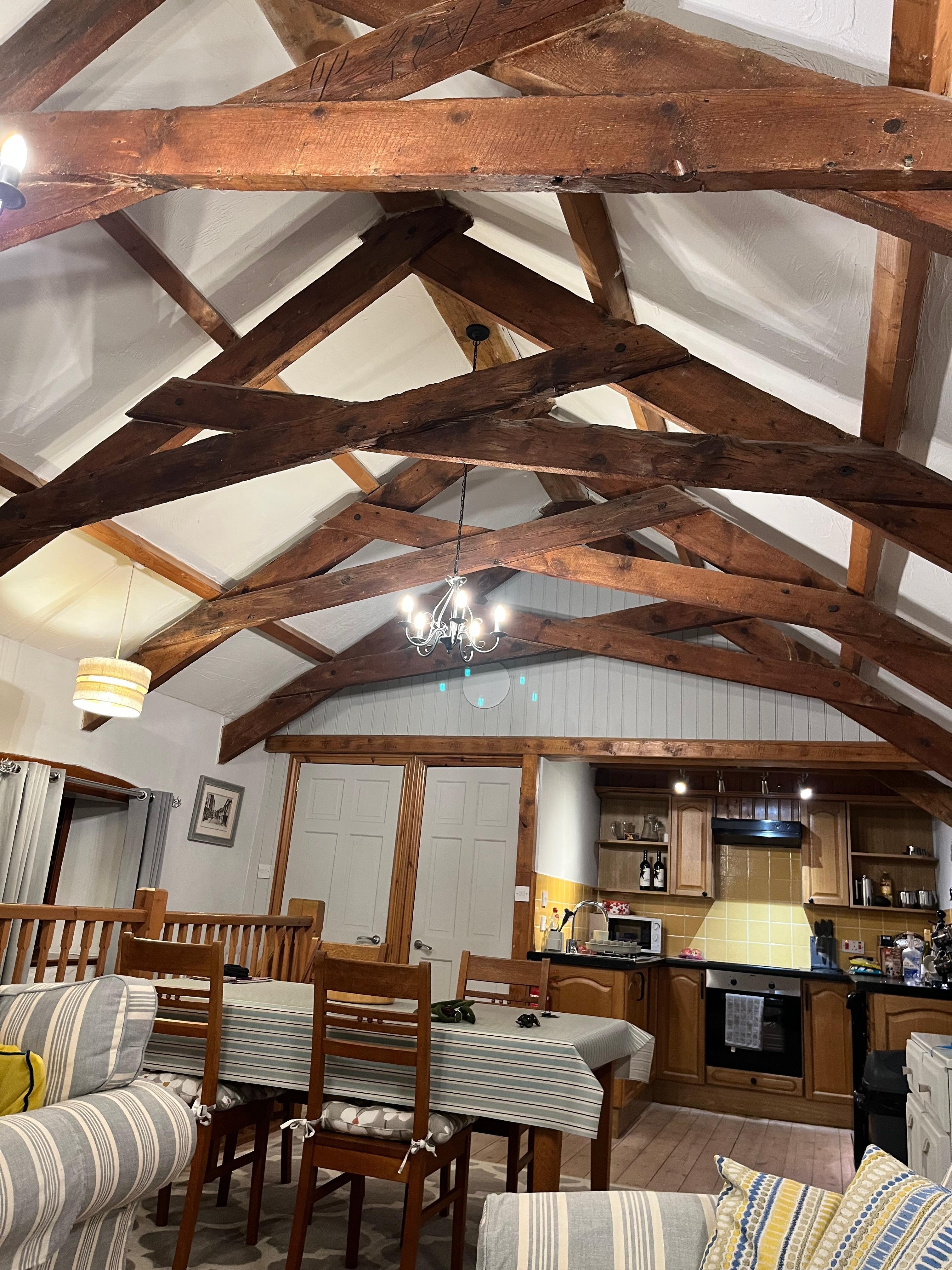 A lovely spacious converted barn, with original exposed beams, open plan kitchen/dining and living area which has a cosy wood burner.