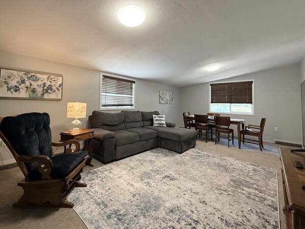 Welcome to Happy Hazel House, where comfort meets charm and every room brings a little joy. This single-level home is filled with calming colors, cozy spaces, and fresh flowers throughout — designed to make you feel instantly at ease. With a spacious king bedroom and a second bedroom with two twin beds, there’s room for families, friends, or couples traveling together. The brand-new mattresses make every night restful, and the large chaise couch in the living room offers extra sleeping space if needed. The fully stocked kitchen makes cooking a breeze, with a casual kitchen table for five and a larger dining table that seats eight — perfect for game nights or group meals. For work or study, a dedicated desk and comfortable desk chair are available, so you can stay connected without sacrificing comfort. The game and exercise room is a favorite spot, featuring a recumbent bike, pool table, air hockey, board games, and books for all ages. Step outside to a huge backyard where you’ll find a fire pit surrounded by Adirondack chairs, a patio with seating for four, and a propane grill — ideal for relaxed evenings under the stars. Whether you’re cozying up indoors or enjoying the fresh Boise air, Happy Hazel House is a space that invites you to slow down, laugh a little louder, and simply feel happy. And yes — we`re pet friendly, too!