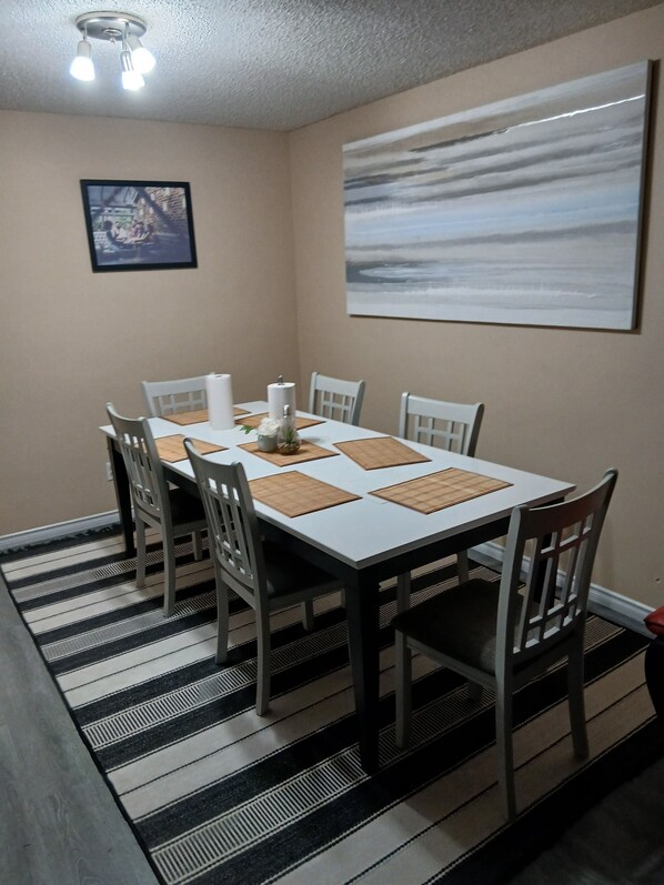 Extra large living room, kitchen and dining room, fully furnished.