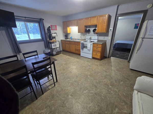 Escape to a cozy 1-bedroom apartment in Calumet. This adorable space features a queen bed, a living room with a sofa bed, and a bathroom with a shower and hair dryer. Enjoy the convenience of amenities like AC and heating during your stay. Stay comfortably between Hancock and Calumet in this 450 sq ft apartment—your ideal Keweenaw base near MTU.
