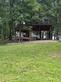 Perched high in the trees on 10 acres with a serene water view, TWISTED SASSAFRAS TREEHOUSE offers a cozy retreat. Unwind by the fireplace or toast your feet by the firepit below, then relax in the hot tub on the deck or snuggle up in a hammock for two. The treehouse features keyless entry and free Wi-Fi.