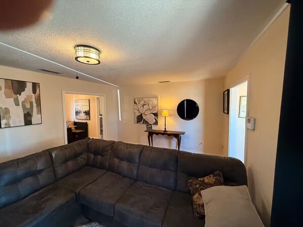 Breakfast brought to the front door of this cozy clean two bed room house. Everything needed for a great stay!