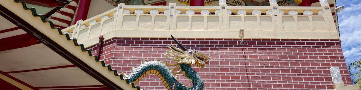 Marvel at the intricate dragons and oriental décor and learn about Taoist rituals in this Chinese temple with a panoramic vista.