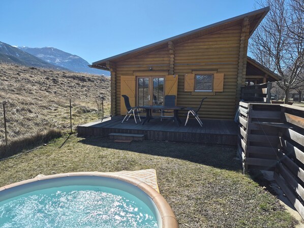 CHALET TERRACE MOUNTAIN VIEW PRIVATE JACUZZI IN 3* CAMPSITE LE DOMAINE DES ECRINS