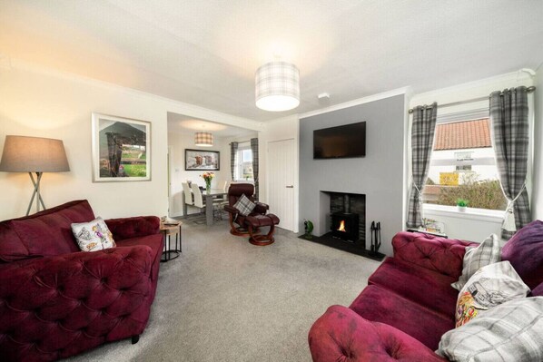 Perched on the border of England and Scotland, Pelshaven Cottage is a charming, recently refurbished 2 bedroom property, ideal for families and those seeking a change of scene in a quiet, rural setting.Located in the beautiful village of Cornhill-on-Tweed in Northumberland, there are lots of opportunities to do as much…or as little…as you like when you stay here!Surrounded by wonderful scenery, this welcoming home from home combines modern styling and home comforts. Just relax and enjoy!The spaceThe cottage is tastefully furnished and boasts a bright and comfortable lounge/dining space with a log burner for those cosy nights in. The newly fitted kitchen is modern and bright with patio doors opening onto a large landscaped outdoor area. There is attractive outdoor seating and even a swing seat for the ultimate in garden escapes!Inside, there are two bedrooms – the master double with a Tv and ensuite shower room, and another roomy bedroom with 2 single beds, again with Tv. The main bathroom has both bath and shower and of course there’s a smart Tv with Netflix plus lots of DVDs for guests to enjoy.Key Features2 bedrooms (1 x double bed, 1 x 2 single beds)Master bedroom has ensuite shower roomModern, well-equipped kitchenLovely landscaped garden with outdoor seating area and swing seat!Child and dog-friendly accommodationLog burner in loungeLocationThe Borders region is the ideal location for a short break and truly has something for everyone!Cornhill-on-Tweed itself has a wonderful village shop and the local hotel has a bar and excellent restaurant. Coldstream, just minutes away, has a larger supermarket, choice of takeaways, petrol station and of course the Guards Museum!For lovers of outdoor activities, the surrounding countryside provides loads of opportunities for walking and cycling with good hill walks and mountain biking tracks in the area. The Cheviots, Northumberland National Park and Kielder Forest are all lovely places to visit.There is salmon fishing on the River Tweed and for golfers, there are excellent courses at nearby Coldstream (5 minutes away by car) and Kelso (10 minutes) plus there is an off-road driving centre near Duns.The area is rich in history and the walled city of Berwick-upon-Tweed (only 15 minutes away) makes for a great day out. There are lots of castles to explore too including Etal Castel, Floors Castle and of course, Alnwick Castle, which is a must for any Harry Potter fans!There are also abbeys at Melrose, Selkirk and Dryburgh and it’s fun to visit the fascinating Holy Island of Lindisfarne which you access by driving over the causeway. Just make sure that you plan well for the tide though!If you’re keen to visit a city or to hit the shops though, it’s only 45 minutes to Edinburgh and 60 minutes to Newcastle.Entire cottage with outdoor spaceThe Borders region beckons with a plethora of attractions, catering to every whim!Cornhill-on-Tweed boasts a charming village shop, while the local hotel offers a welcoming bar and an exceptional restaurant. Nearby Coldstream provides additional amenities, including supermarkets, takeaways, and the intriguing Guards Museum.Outdoor enthusiasts will delight in the abundance of walking and cycling opportunities amidst the scenic countryside, with ample hill walks and mountain biking tracks to explore. From the Cheviots to Northumberland National Park and Kielder Forest, nature`s wonders await.Anglers can indulge in salmon fishing on the River Tweed, while golf enthusiasts can tee off at nearby courses in Coldstream and Kelso. History buffs can embark on a journey through time, visiting landmarks like Berwick-upon-Tweed, Etal Castle, and Alnwick Castle, a must-visit for Harry Potter aficionados!With Edinburgh just 45 minutes away and Newcastle a mere 60 minutes by car, urban adventures and retail therapy are within easy reach.