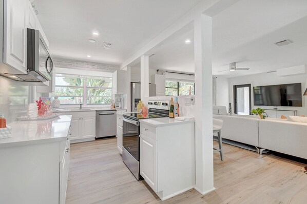 - Professionally renovated in 2023 with modern coastal décor and luxury furnishings