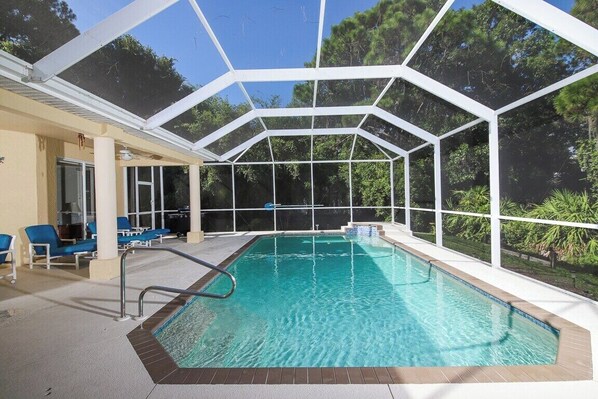 We really enjoyed the house! It is very spacious, great location (close to the beach), and the pool was wonderful. The pool is heated and very big. We had a great time! The house was well stocked with a full kitchen which was great for cooking for a big family. There’s an awesome grill outside to use too. Will definitely look to stay here again!