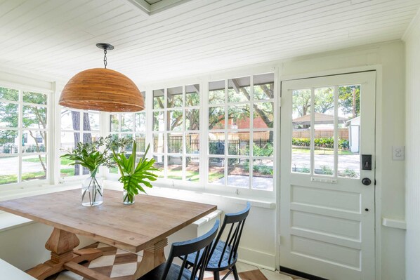 Location, location, location! Such a close and convenient place. Quick walk to coffee (loved the partnership discounts), shops, restaurants, and the pier. House was very clean and well designed with a nice aesthetic. Plenty of room to socialize, and hang out. Host was very accommodating in helping us secure a pack and play for our stay as well as a kitchen item that wasn’t functioning. Fast resolution! We loved the pool, as an activity but also as a social space with the outdoor table set.
