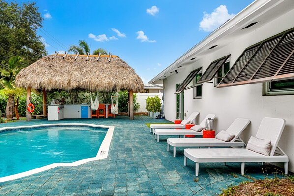 Eccentric home with pool, tiki hut & outdoor kitchen
