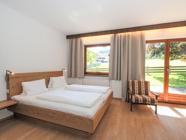 Fügen: Cosy apartment block "Römerhof". 11 apartments in the residence. In the district of Kapfing 1.5 km from the centre of Fügen, in a quiet, sunny position, 6 km from the lake, 1.7 km from the skiing area, in the countryside. For shared use: large, beautiful, well-kept garden. In the house: lounge, WiFi, sauna (all included), storage room for bicycles, storage room for skis, central heating system, washing machine (for shared use, extra). Motor access to the house. Parking at the house. Supermarket 1 km, restaurant, bakery 300 m, 10 minute walk to the centre, bus stop "Kapfing Dorf" 400 m, railway station "Kapfing Bahnhaltestelle" 450 m, outdoor swimming pool, indoor swimming pool 700 m, thermal baths "Erlebnistherme Fügen" 700 m, bathing lake "Schlitterer See" 6 km. Golf course (18 hole) 2 km, cycle lane 50 m, ski lift 1.5 km, gondola lift 1.7 km, ski bus stop 100 m. Well-known ski regions can easily be reached: Spieljochbahn Fügen 1.7 km, Hochzillertal-Hochfügen Kaltenbach 5 km. Please note: ski bus (free of charge). Additional accommodations can be booked. Limited Wi-Fi reception!
