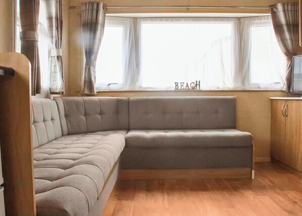 Introducing the ABI Vista, a 2-bedroom caravan designed to accommodate up to 6 guests. The sleeping arrangements comprise of one double bedroom, one twin bedroom and a pull out sofa bed in the living area. The living area features an L-shaped sofa and dining area arranged around the TV. The kitchen is fully equipped with a fridge/freezer, kettle, microwave, oven, and hob. The bathroom is fitted with a shower, toilet, and basin for your convenience. Please note, pets are not permitted in this accommodation.. Situated just steps from Norfolk’s golden sandy beaches, Eastern Beach Caravan Park offers a fantastic base for your coastal escape. The park boasts a newly refurbished bar, the perfect spot to relax after a day out, as well as seasonal entertainment to keep the whole family entertained.