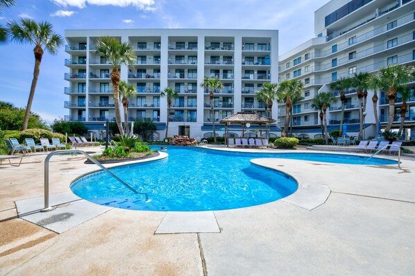Property has a lot to offer. Great pool area and piers. Easy, quick access to the beach. This property was very clean and comfortable. Great view of the gulf.
