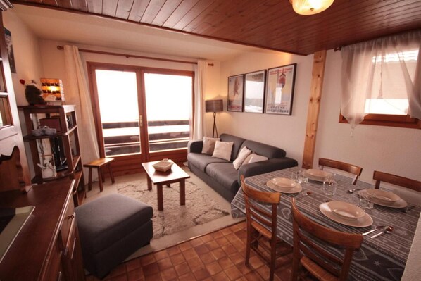 100m from ski slopes, 2nd floor, view ski slopes, balcony, tv, ski locker, 22m², Les Saisies