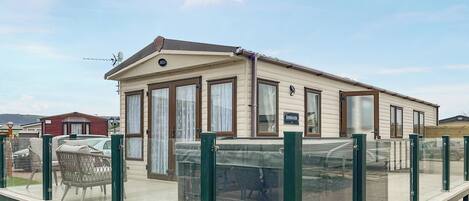 Contemporary lodge with one master double with en suite shower and two twin, all boasting TVs. Family bathroom with bath and shower. open-plan living space with a modern kitchen and dining area. Additional to this there is also a outdoor hot tub. The spacious family living area is a comfortable environment for you to relax in after a long day exploring North Wales.