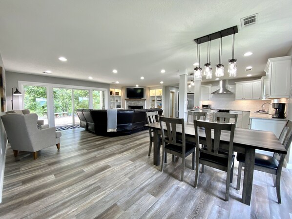 KITCHEN: Well-equipped w/ cooking basics as well as blender, hand mixer, crock pot, drip and K-cup coffeemaker, toaster oven, microwave, and dishwasher. Dish soap and dishwasher tabs are provided.
