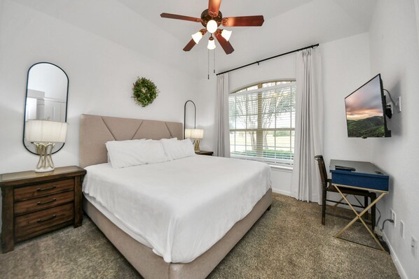 3 bedrooms, desk, iron/ironing board, travel cot - Cinco Ranch Furnished 1 Story Home, King Beds, Walking Trail, Sleeps 6+ (Katy)