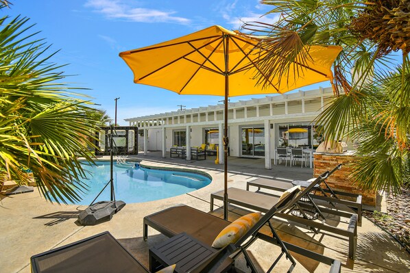 Indoor: Step into this vacation haven, where vibrant creativity meets cozy living. Upon entering the home, you'll be welcomed by a mural featuring Ariana Grande and Dua Lipa. The living room welcomes you with striking murals of music legends Amy Winehouse and Madonna, adding a unique touch to your stay. There is plenty of room in the living room to lounge in front of a 65-inch Vizio Smart television and natural gas fireplace with comfort. Above, a dazzling crystal chandelier graces the room with its luminous elegance. The dining area is adorned with a mural of Janet Jackson, creating a feast for the eyes as you dine. The casual dining area seats six, and the fully-equipped kitchen boasts stainless steel appliances, including a side-by-side refrigerator with a water and ice dispenser. It's the perfect place to craft your culinary meals, all set against marble countertops and bar-height dining for four. The entire space is infused with lively and fun colors, ensuring your stay is anything but dull. Please note that spices, condiments, and cooking oils are not provided. Next to the living room, you'll discover the pool table zone. Ignite friendly competition with your family and friends over a game of pool. The area is adorned with captivating murals showcasing Christina Aguilera, Rihanna, and Diana Ross. Enjoy easy access to and from the backyard through the sliding glass door in this inviting space.
