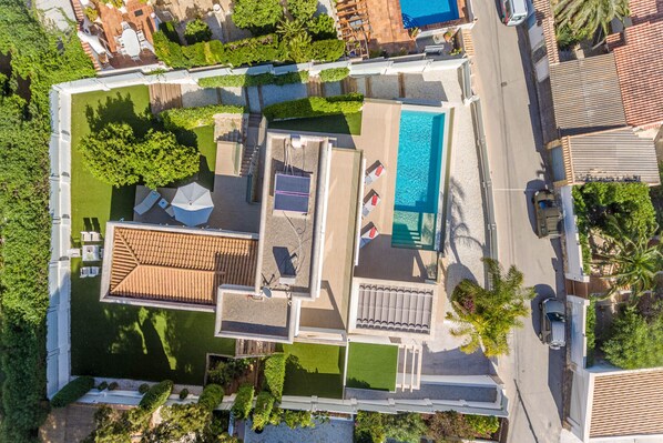 The villa is located in the Balcón del Mar urbanisation in Jávea, a quiet residential area next to the famous "Cabo la Nao", with several viewpoints and small beaches nearby such as "Cala en Caló" just 2 km away, "Cala Ambolo" and "La Granadella". It has several services in the surrounding area, including the well-known restaurant "Mirador de Jávea" 1 kilometre away and a supermarket "Wimark Supermercado" 700m away. Although supermarkets and restaurants can be found around, the Arenal de Jávea area is only 6 kilometres away, which has the only sandy beach in Jávea and numerous services, such as supermarkets, pharmacies, restaurants and bars. The "ALC" airport is 100 km away. It is advisable to have a car to get around the area.