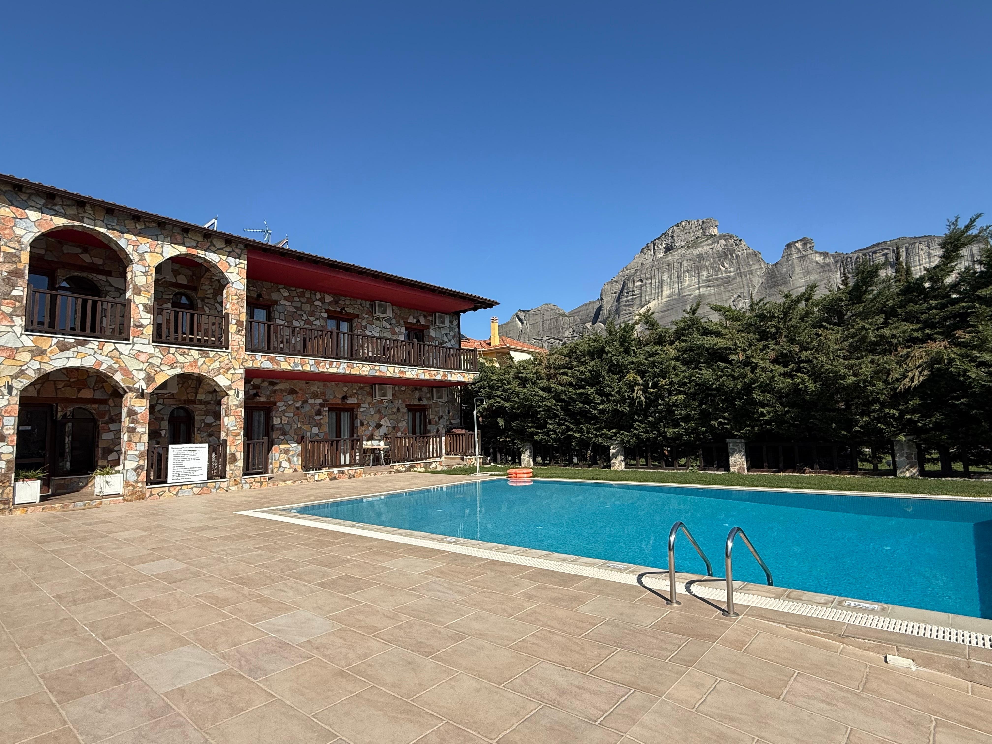 A very nice little resort on the edge of downtown Kalabaka. The pool was a welcome option in the heat of summer. Staff is very friendly and helpful. We would stay here again - highly recommended