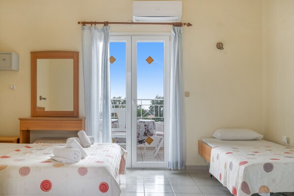 It consists of 6 studios with stunning garden views, surrounded by a swimming pool and pool bar. Sunbeds and umbrellas are available. You can also have your full English breakfast or choose from a variety of cold or hot dishes and snacks at the pool bar. Accommodation All studios are furnished in a simple and fresh way, with a double bed, a folding single bed, bathroom with shower, TV, air conditioning, safe, kitchenette, terrace or balcony with garden or sea view. The hotel has: o Pool bar o 1 outdoor swimming pool, also provides the following services: Reception, Wi-Fi (free of charge), Sunbeds and umbrellas at the pool (free of charge),Change of linen: Every 2nd day o Change of towels: Every 2nd day o Room cleaning: Every day