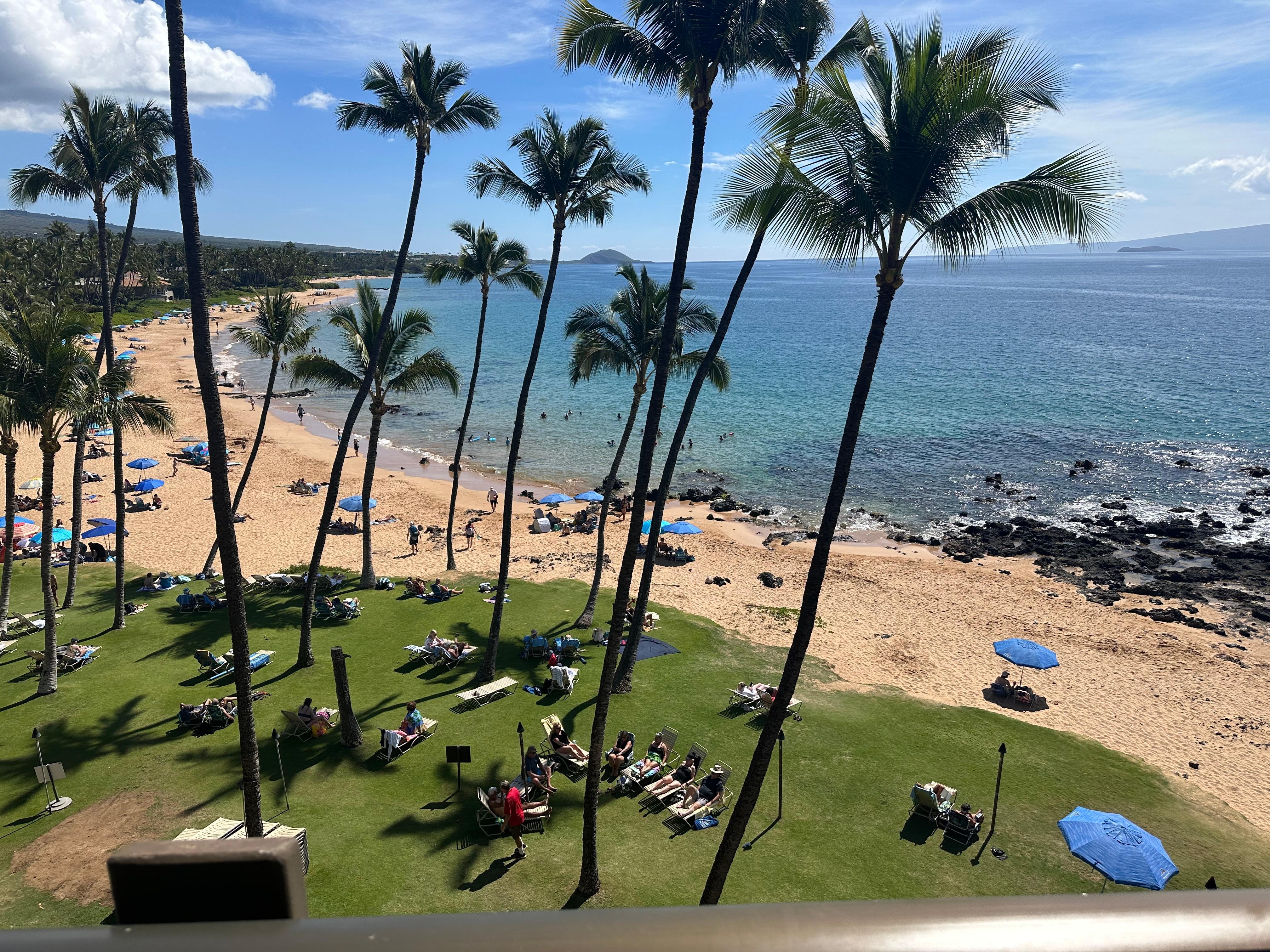 **BEST LOCATION AT THE MANA KAI RESORT: Mana Kai 402 offers the best ocean views and the best location in the Mana Kai Resort. This condo is located at the ocean end of the building with breathtaking views of palm trees and Maui’s beloved Keawakapu Beach. From Unit 402’s lanai, guests are treated to scenic views of the Haleakala Volcano and the islands of Molokini, Lanai and Kahoolawe. Both bedrooms have direct, unobstructed ocean views. 402 is located away from the stairwells, the elevators and the noise. Open the sliding doors to the large lanai and enjoy the soothing sounds of ocean waves.