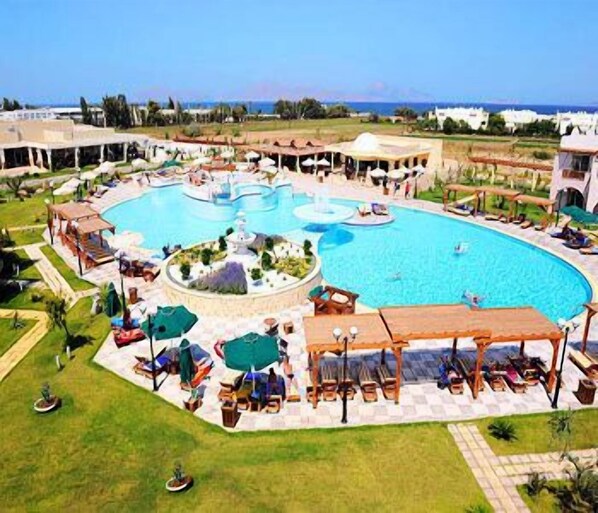 豪華酒店,設有3 個室外泳池和酒吧
