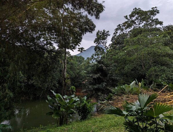 Wake up to peaceful lake and Arenal Volcano views from your cabin.