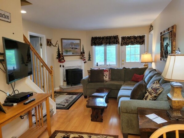 4 Bedroom multi level condominium, 3rd floor front with balcony and deck and great views of Loon Ski Area. Master bedroom offers Queen bed, TV, full bath and walk-in closet. Guest bedroom offers Queen bed, TV, full bath and walk-in closet.  Second level features separate TV sitting area with A/C, full bath, sunny deck overlooking Loon Mt Ski Area, and two small bedrooms.  Each upstairs bedroom has air conditioning, a twin bed and  bunk bed. (no windows).  Fully applianced and utensiled kitchen with breakfast bar and 3 stools; dining area with table and 6 chairs. Living room area offers A/C, 32" Flat Screen TV and DVD, gas fireplace, and balcony. As our guests, you will have full access to the in-house fitness center which offers an indoor hot tub, indoor heated pool, exercise equipment and game tables, and outdoor seasonal hot tub and pool. Onsite charcoal grilling/picnic area (gas grills prohibited).  Each unit offers high-speed WiFi and free local calls.The Nordic Inn is convenient to all local and manmade attractions the NH White Mountains have to offer including Franconia Notch State Park, Cannon Ski Area, Loon Mt. Ski Area, Pemigewasset River for kayaking and swimming, Echo Lake State Beach, Cross Country Ski Trails and Snowmobile Trails.