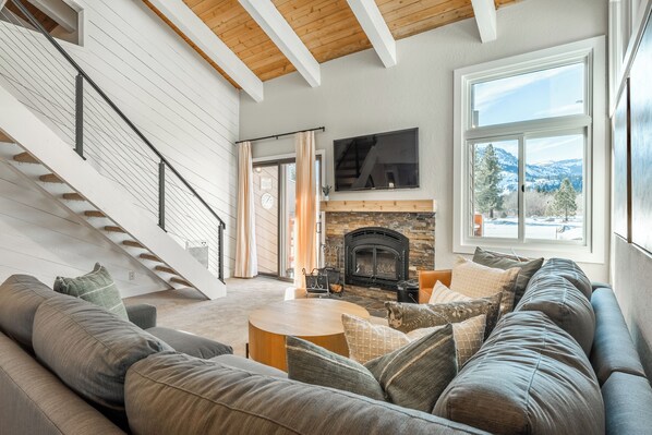 FULLY REMODELED ~ Nov.24! No surface untouched. New Kitchen and 3 new full baths. Welcome to our spacious 3bd + loft / 3ba condo with amazing views. With 8 beds, it's perfect for large families and groups of friends. With 3 bedrooms and a large loft bunk room, you can sleep 3 families. There are 8 beds and 2 sectional couches. Our condo will easily sleep >10 guests, and all of the beds are very comfortable. The kitchen, dining and living room are open concept and great for lounging. Situated right alongside Mammoth Creek and the Mammoth Town bike path.