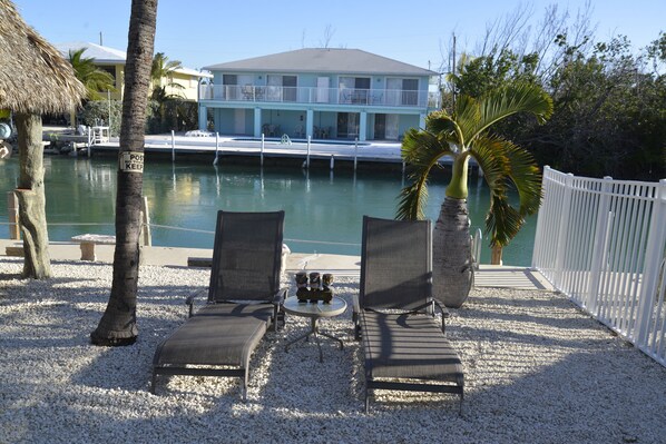 The unit comfortably accommodate up to six people and are completely decorated. Master bedroom with King-size bed and Bedroom #2 with one full-size and twin bunk beds. Large Kitchen/Breakfast area leading into beautiful spacious dining room overlooking the patio and turquoise canal! and 40 Feet of Dock Space on Canal.