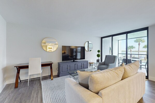 Inside, you’ll feel right at home. Rest easy in the plush king bed or cozy sofa bed, and enjoy a fully equipped kitchen with modern appliances, including a dishwasher and coffee maker for easy mornings. Stream your favorite shows on Netflix, browse with free WiFi, or enjoy cable TV. Just outside, indulge in resort-style amenities—refresh in the pool, unwind in the hot tub, or rally friends for a match on the tennis or pickleball courts.