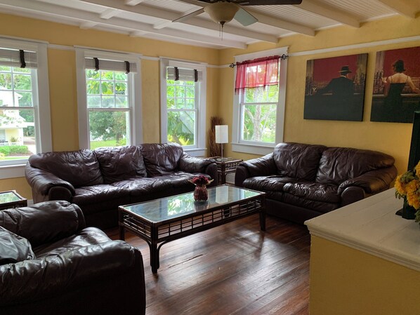 Spend your mornings on the back porch or lounging in the living room. You can also watch your favorite movies or local stations in the living area on the flat screen television equipped with Roku. There is a study area available to catch up on any work you may need to do during your stay. WiFi is available.