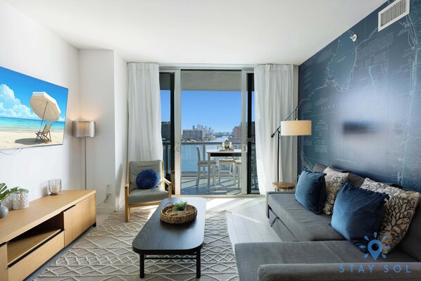 Light-filled and coastal in spirit, this Beachwalk Resort apartment immediately sets a relaxed, sun-washed mood. From the moment you enter, you feel the balance of resort energy and private comfort, framed by water views and ocean air. Perfectly positioned between Miami Beach and Fort Lauderdale, the atmosphere invites you to slow down and settle in.