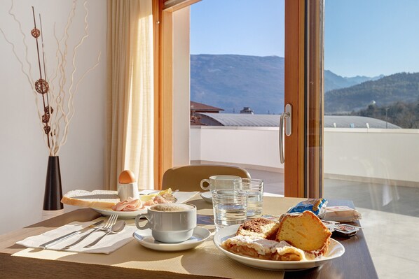 Room Camera matrimoniale in Mori offers 20 sqm of space for up to 2 guests. You have 1 bedroom and 1 bathroom available during your stay. The room features mountain view and includes breakfast. Private amenities provided include air conditioning, high chair, baby bed, TV, and high-speed WiFi suitable for video calls.
