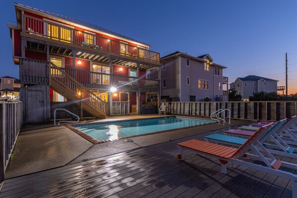 Pet-friendly oceanside home in Nags Head w/ pool, hot tub, & rec room!
