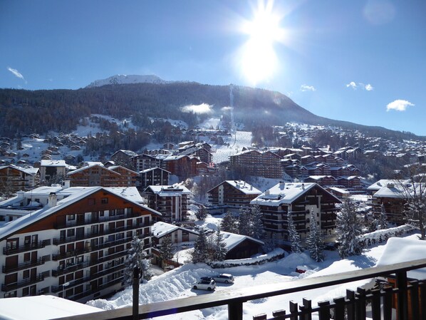 Very nice 6 room apartment on 2 levels, for 8 to 10 persons, approx. 120m2, located in the residence Les Marmottes in Haute-Nendaz and distributed as follows: on the lower level: 1 double room for 2 persons (2 mattresses) with access to the South balcony - 1 room with bunk bed for 2 persons and access to the North balcony - 1 room for 3 persons with 2 single beds and 1 bed 140x200 - 1 bathroom with Italian shower, toilet, 1 bathroom with Italian shower, toilet, washbasin and towel warmer - open kitchen fully equipped (oven, microwave oven, ceramic hob, large fridge, Nespresso coffee machine) - living room with spacious dining area with exit to the South balcony, sitting area with flat screen TV, Blu-ray DVD, PS2 (with games) and WIFI. Upstairs: 1 separate toilet with sink - 1 bedroom with 1 double bed (2 mattresses) and 1 single bed - 1 bedroom with 1 bed. Baby bed and high chair available in the apartment. On the landing: very large closet available for the apartment. Laundry in the building. Outside: parking spaces reserved for the building according to availability. Very good location, a few minutes walk from the center of the resort and all amenities (bus stop, bakeries, post office, banks).