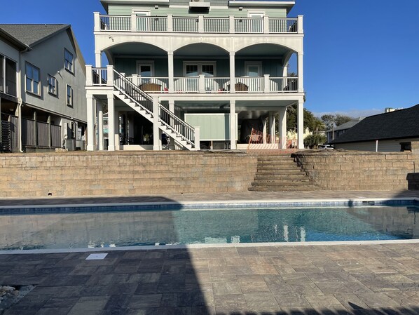 度假屋设有私人游泳池,步行 5 分钟可到北默特尔比奇海滩