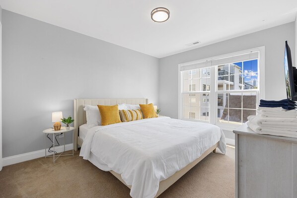 The townhouse features a tastefully decorated and inviting living area, providing a comfortable space for your family and friends to gather. Enjoy movie nights on the flat-screen TV or share stories of the day's adventures.