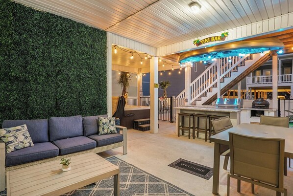Outdoor dining - Brand NEW Heatable PRIVATE Pool| Mini-Golf |Hot Tub| Steps2Beach| Ground Floor Suite, Perfect for Families, Close to Everything in NMB! (North Myrtle Beach)