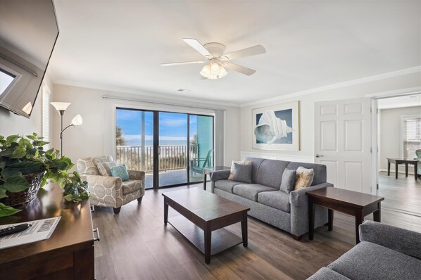 Tropical Fun has a Private, Outdoor Swimming Pool.This is a family rental property that is located in a quiet, residential community. No groups or house parties allowed.Adherence to maximum occupancy, parking, trash and noise ordinances is required and strictly enforced - any violation will result in eviction.Step out of the hustle and bustle of the regular routine! Take some time away from everything and enjoy a beach getaway! Tropical Fun is an ideal setting for the large family that needs to spread out and enjoy each other. This North Myrtle Beach, SC beach house has an oceanfront viewfor miles and plenty of room.Tropical Fun is an eight bedroom, eight bath beach house in the Cherry Grove area of North Myrtle Beach. Boasting two fully equipped kitchens and two living rooms, friends and family can relax, refresh and renew as they enjoy catching up and stretching out. An oceanfront viewfrom the balcony and master bedroom encourage an atmosphere of serenity.This North Myrtle Beach rental brings the world to your fingertips with WIFI access, numerous flatscreen TVs and a couple DVD players. Take a break in the outdoor swimming pool. An outside shower and washer and dryer are also amenities in Tropical Fun for added convenience.Just flip flop out to the beach where hours of pampering and discovery await you. Search for shells, build sandcastles, walk to the Cherry Grove Fishing Pier and spy for dolphins. SCUBA dive, ride on a banana boat and parasail over the ocean.Tropical Fun is close to many North Myrtle Beach activities like golfing on champion courses, kayaking or canoeing along the inlets and state parks, bicycling through scenic streets and riding the Myrtle Beach SkyWheel.North Myrtle Beach restaurants have delicious menus to tempt you with seafood buffets, sidewalk cafes, fine dining and family friendly fare wherever you go. Shop in local boutiques and the Tanger Outlet Mall. Enjoy a scoop of gelato while watching the activities on the waterfront and Carolina shag dance to beach music every night.Family fun is just around the corner from Tropical Fun with theatre, live entertainment, concerts and more. From House of Blues to Medieval Times Dinner and Tournament there is sure to be something to satisfy everyone in your group.Let Tropical Fun be the vacation beach house where your expansive family can enjoy themselves, relax at the beach and put their feet up each night. North Myrtle Beach, SC is a destination vacation spot all year long. See you soon!Please Note: We rent to families only. House parties, loud noises and extra vehicles are prohibited violation of this will result in eviction. 2 LIVING ROOMS WITH 65" TV 2 KITCHENS GRANITE COUNTERS BEAUTIFUL VIEW FROM BALCONIES POOL IS 10 X 20 AND 5FT DEEP GRILL LUXURY VINYL PLANKING BEAUTIFUL END OF THE BEACH STAINLESS APPLIANCES OUTDOOR PATIO/DINING AREA