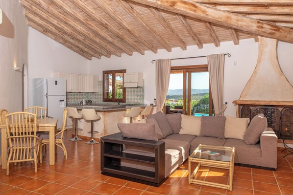 We stayed here for 5 nights - and loved the house.It’s well stocked and spacious with quality fixtures & fittings.The outside space is compact but comfortably room for 6 loungers and a lovely dining area with views to the sea beyond. It also has a gas BBQ. Location is perfect for exploring the many lovely beaches & towns north of Olbia. There’s a great Pizza place at the bottom of the road joining the Pittulongu main road - take away or eat-in upstairs!Theres a small, but well stocked, supermarket just along the road. (If you are barbecuing- try the sliced chicken, from which they remove fat etc before weighing & thinly slicing it!)The immediate issue we had on arrival was the pool which is small & quite deep. I’m sure it’s lovely - but it was impossible for the older generation to get out of it. The “ladder” doubled up as pool filter unit with very narrow foot holds and an high starting point. Our daughter & partner were ok with sone effort, but the oldies never entered the pool on the basis we’d never be able to get back out unaided if we did!It should be made clear in the villa description that the pool may be unsuitable for older clients or those with mobility issues. Use of the pool is an essential part of the holiday for us and we would not have booked this property had we known. Hopefully this description will be rectified in future.That said when we raised the matter with the local agents they found another pool we could use on our last 2 days!