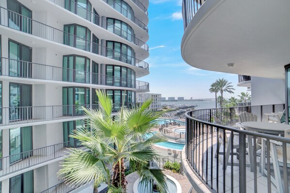This property is so nice. We loved that we were able to park right on the level with our room. So no waiting on elevators. The weight room was right there, so my son and husband got to use it easily. The view was nice (though slightly blocked by a palm tree which is not the fault of the condo owner.) We LOVED the pool. The lazy river was EVERYTHING. Even though we are used to renting condos that are directly on the beach, it didnt take long to get to a beach that we have been too. The only negatives: We were told to go straight to our condo, but we later found out we were supposed to go straight to security to check in. The advertisement on vrbo showed a sliding board (which was part of the reason we chose the condo). It was removed a couple of years ago, but no one seemed to be able to tell us this (not the management company or security). The ad needs to be updated. Lastly, the listing says sleeps 6, but there is only bathroom access for those sleeping in the bedrooms. My 10yr old daughter and her friend would have to go through my 17yo sons room or our room. Overall, the negatives would not outweigh the positives! Great weekend!