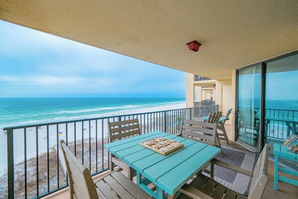 Step outside onto the balcony and be captivated by the breathtaking Gulf front view. Enjoy al fresco dining with table seating for five, or simply kick back and soak in the tranquil atmosphere.