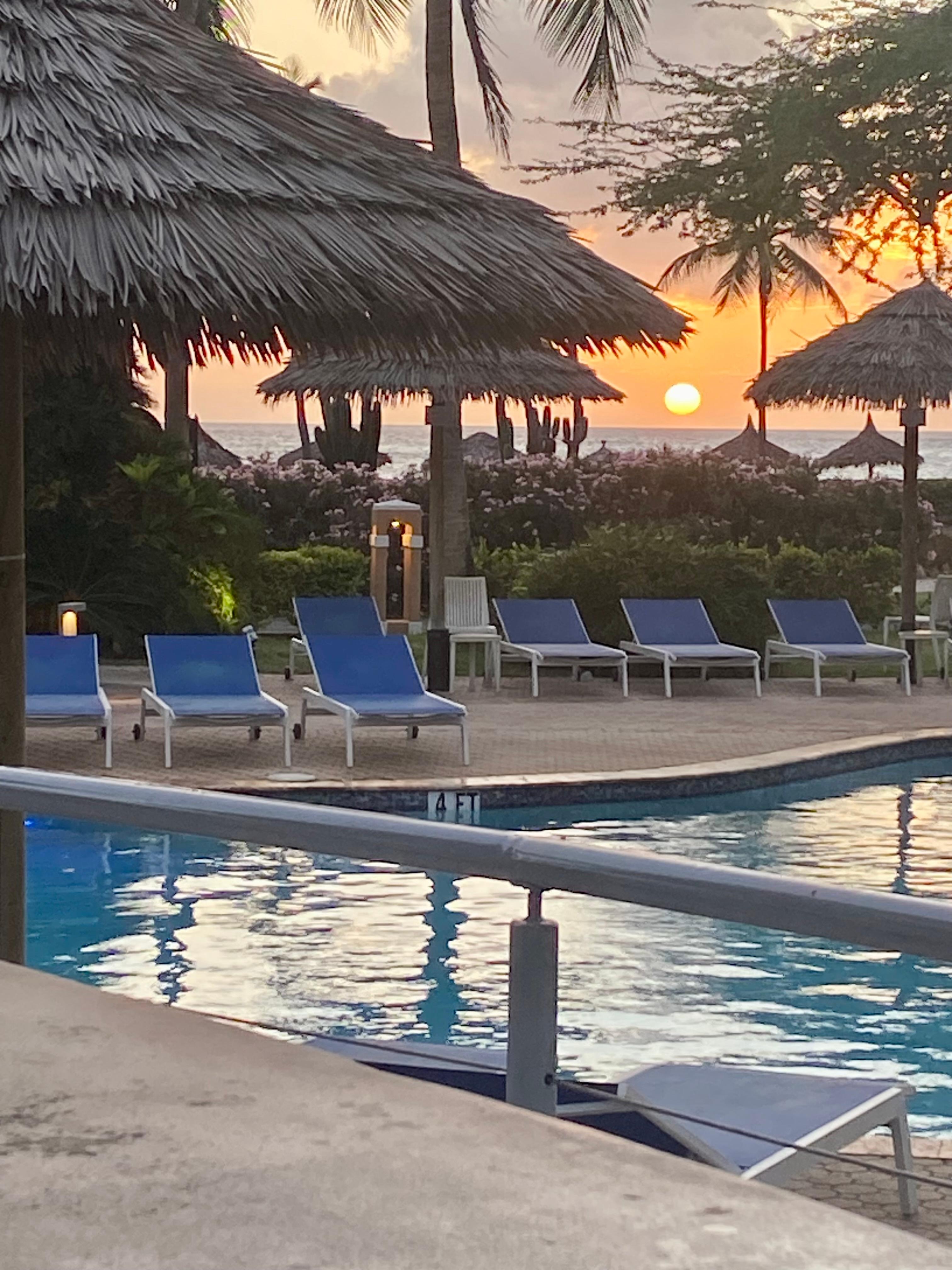 Pros: Great staff. Easy walkable area, close to beach/pools/restaurant on our site. Good variety of food and drink options nearby. Grocery store within walking distance. The Oranjestad ship port was viewable from the beach; we walked to downtown to the port area. This resort is south of the hotel high-rise area and was quieter and less busy.
